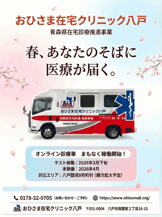 2024年1月1日、事業継承によりおひさま在宅クリニック八戸へと名称変更いたしました。ホームページを公開いたしました。