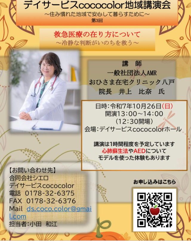 - COCOCOLORさんで在宅医療の講話をさせていただきました。約20名の参加で八戸だけでなく三沢や階上町からもお越しでした。ありがとうございます。アーカイブもございますのでよろしければこちらからご覧ください。合言葉は”おひさま”です